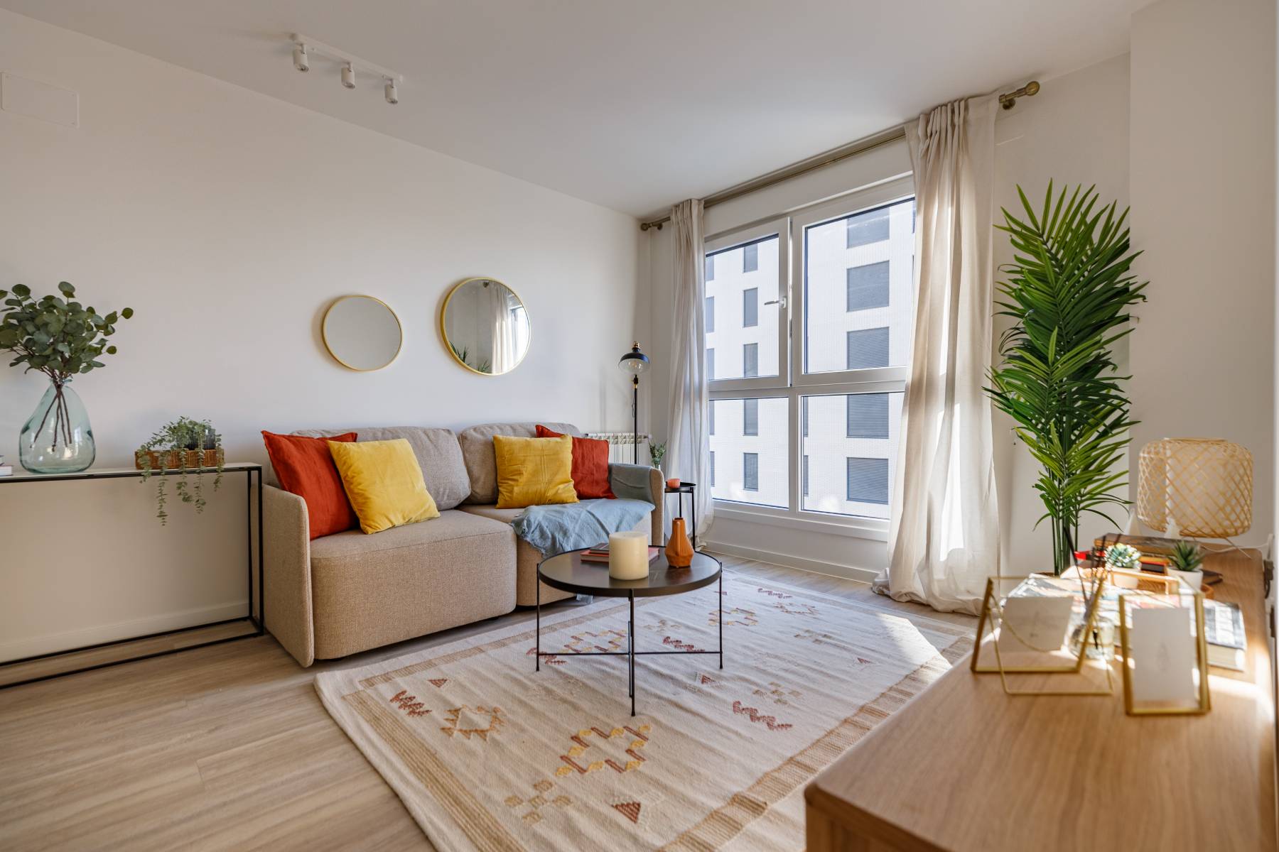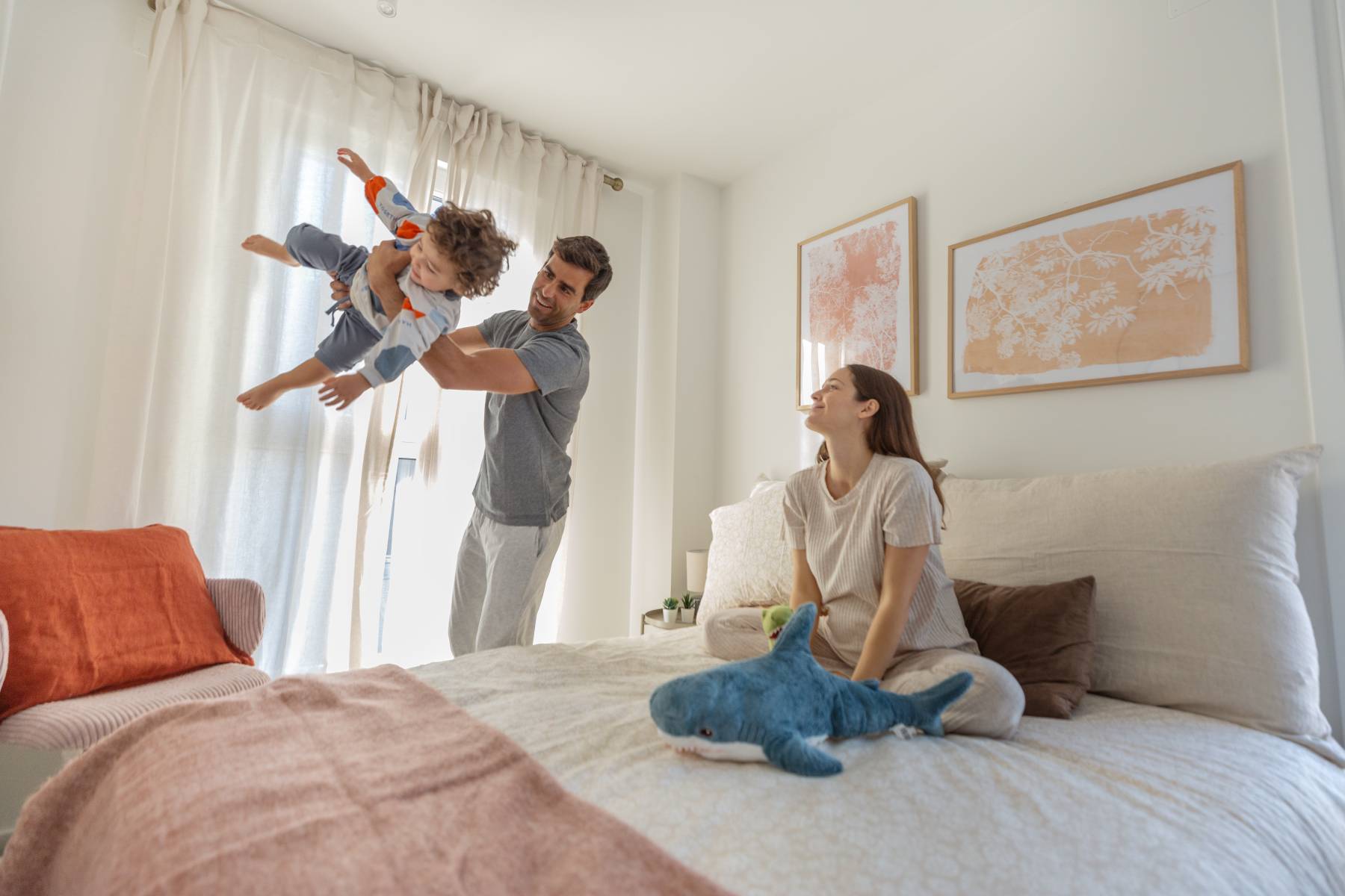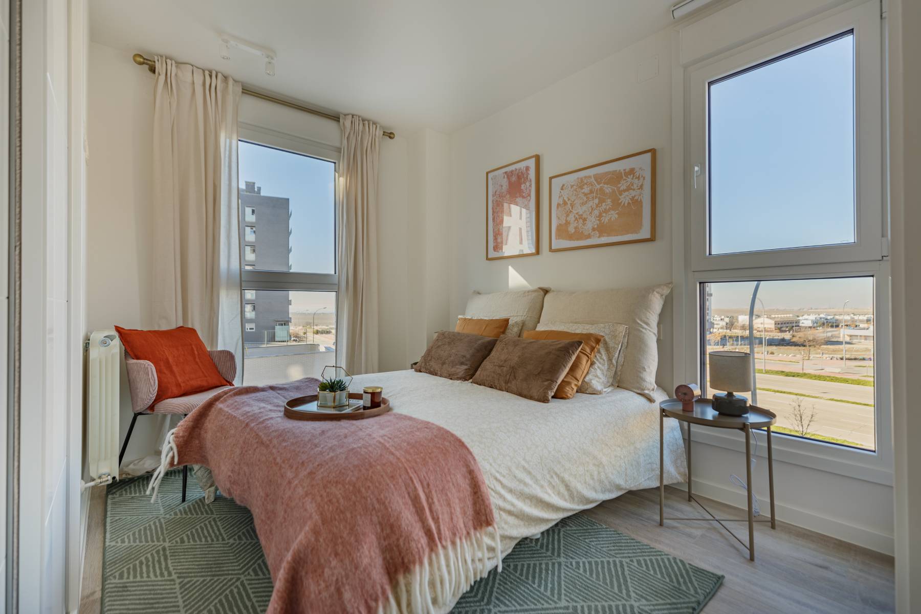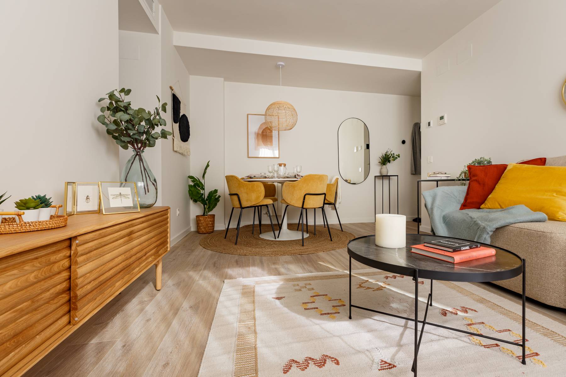 Disfruta de nuestras viviendas de 2 habitaciones, con plaza de parking y trastero incluido. Persianas motorizadas, grandes ventanales, radiadores, aire acondicionado, iluminación LED y cocina totalmente amueblada.